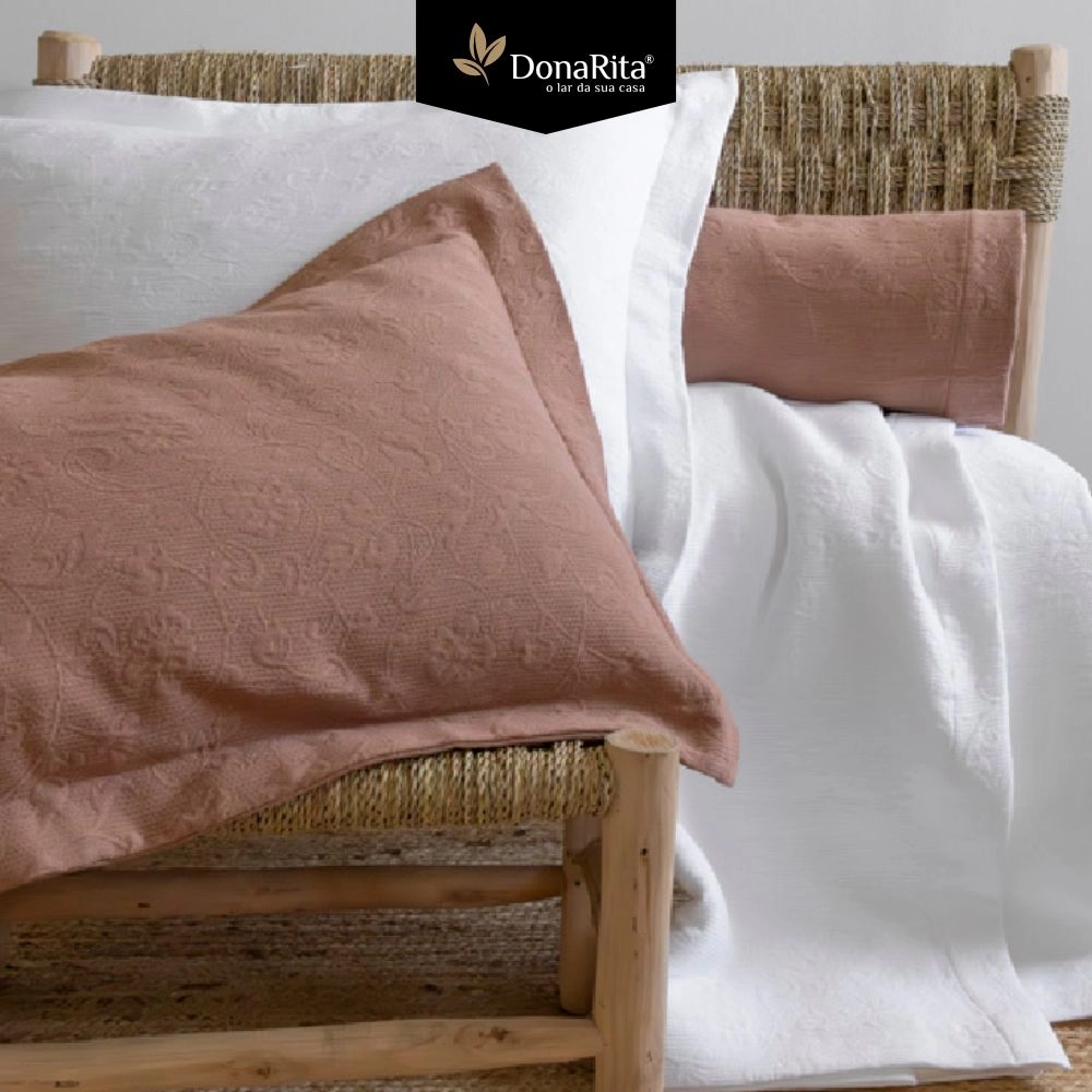 Colcha Carmen Branca Piubelle. Tecido com textura, duas almofadas vazias 50×70+5cm, 100% algodão. Ideal para primavera/verão. Tamanho: 250x260cm. Piubelle_since/desde1981, décadas de tradição na produção de têxteis-lar. Selecionamos roupa de cama de elevada qualidade.